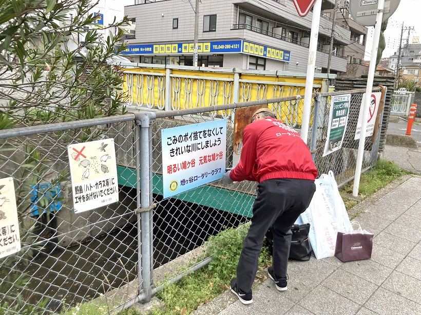 川口市桜町付近~鳩ヶ谷本町付近の見沼遊歩道沿いに設置していた、ごみのポイ捨て禁止看板を新しく張り替えました。当クラブの奉仕活動が、きれいな街づくりや良好な環境づくりの一助になればと存じます。